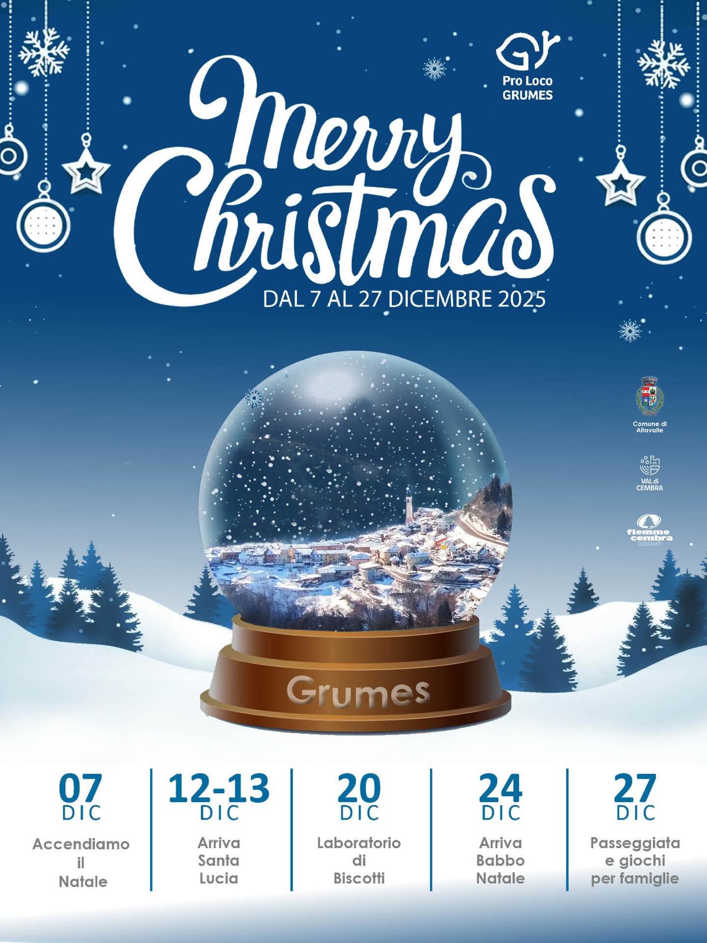 Cos'è La Pro Loco di Grumes durante il mese di dicembre vi aspetta per festeggiare il periodo natalizio con vari eventi a tema.Tutte le date sono riportate nella locandina allegata.